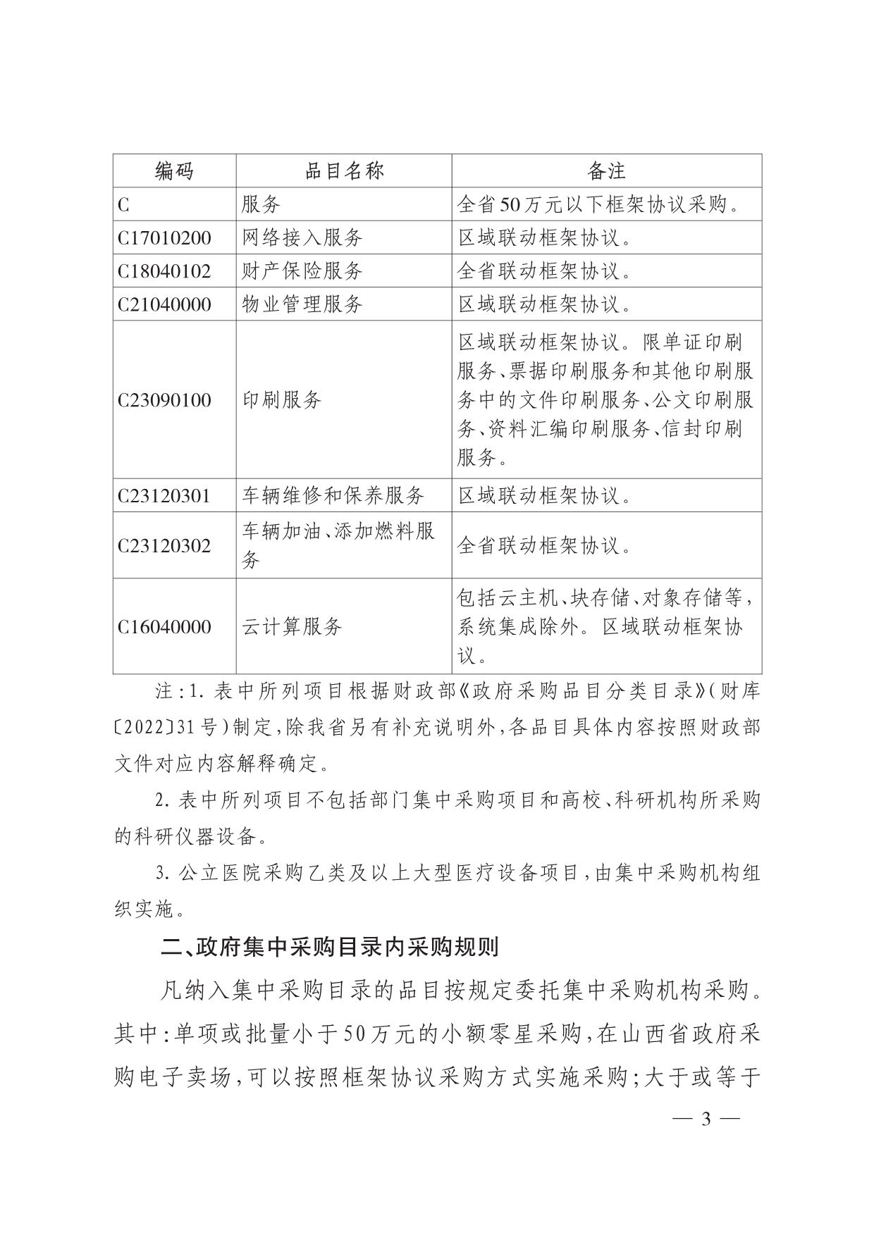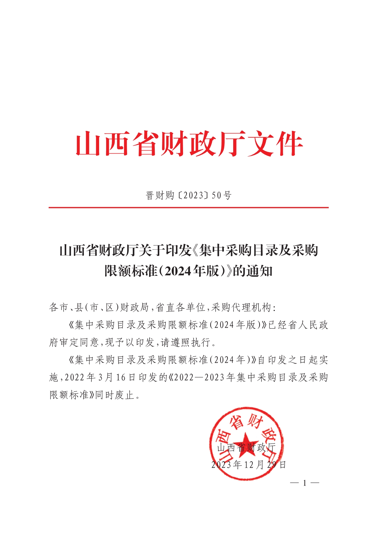 山西省集中采購(gòu)目錄及采購(gòu)限額標(biāo)準(zhǔn)(2024年版)