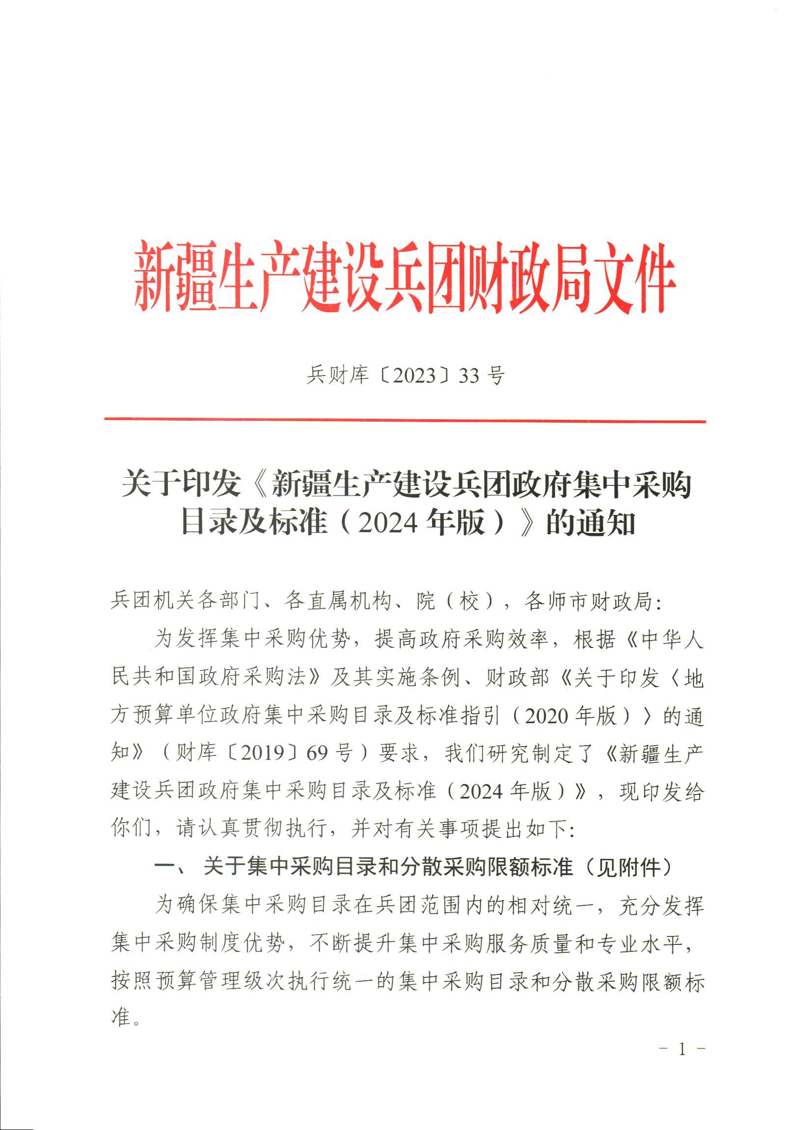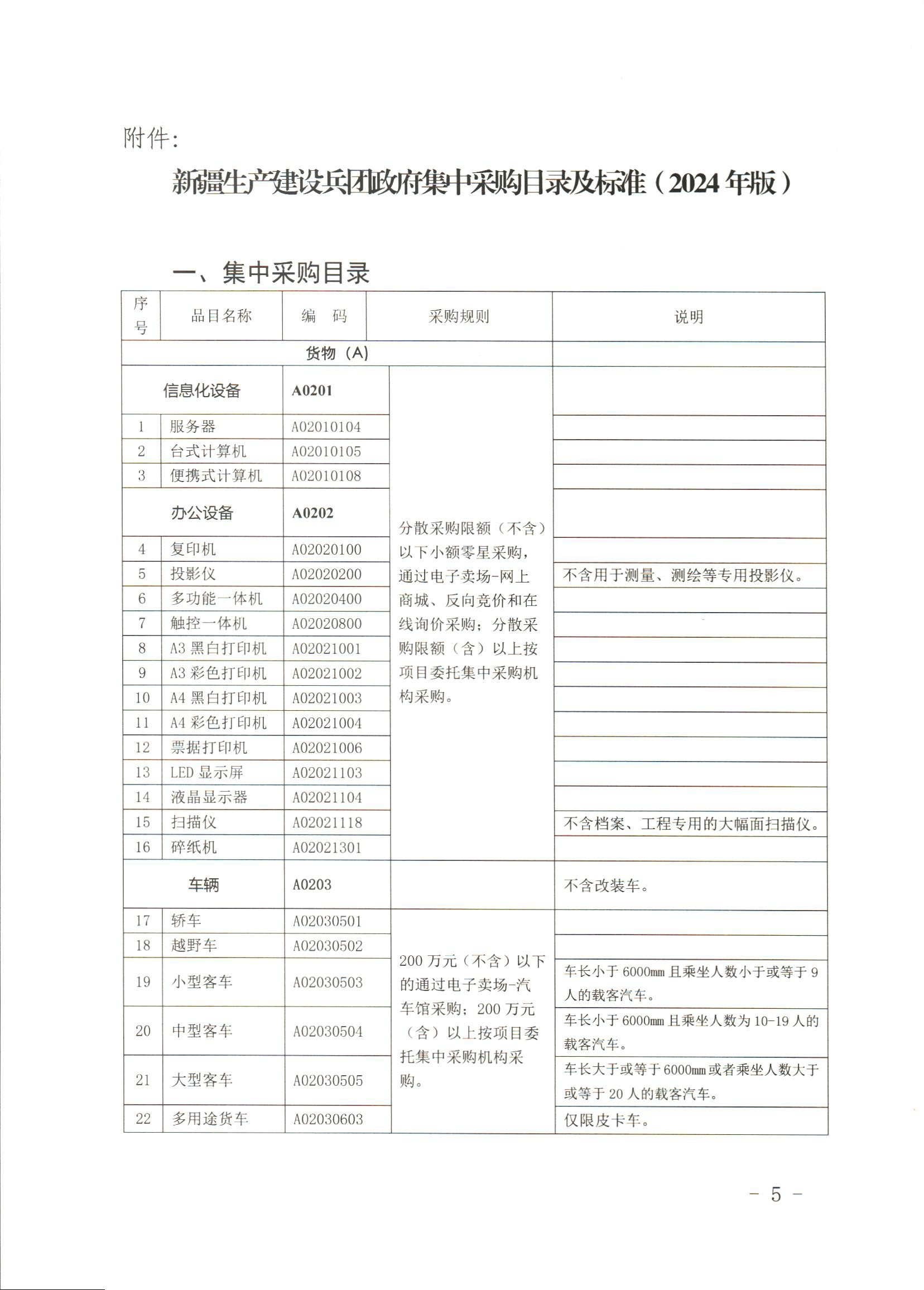 新疆生產(chǎn)建設(shè)兵團(tuán)政府集中采購目錄及標(biāo)準(zhǔn)(2024版)