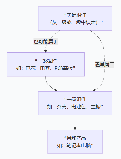 關鍵組件通常從一級或二級組件中認定。例如,筆記本電腦的主板(一級組件) 因其核心地位被認定為關鍵組件;而主板上的一顆中央處理器(CPU,可視為二級組件)更是關鍵中的關鍵。