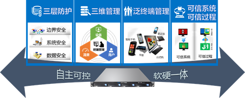 通軟新一代終端安全管理平臺GTMA,以自主可控、軟硬一體的終端管理一體機為基礎(chǔ),為用戶提供了三層安全防護體系、三維管理機制、泛終端管理以及可信系統(tǒng)和可信過程兩種管理模式,從終端管理平臺到平臺運行的環(huán)境均實現(xiàn)自主可控,滿足國家信息安全建設(shè)要求,真正解決傳統(tǒng)終端安全管理的先天不足問題,為企業(yè)信息與網(wǎng)絡(luò)安全建設(shè)提供幫助。