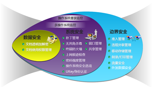 1.終端的邊界安全:對終端所有能夠與外界進行數(shù)據(jù)交互的途徑進行管理和監(jiān)控,防止重要數(shù)據(jù)信息通過邊界外泄。