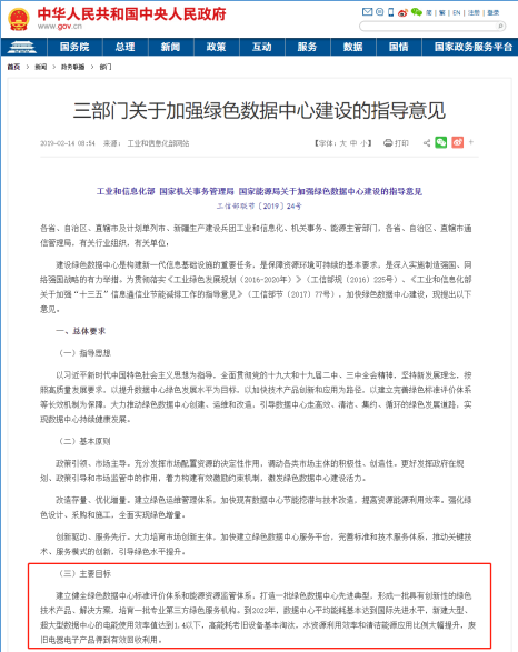 EEUE為同一時(shí)間周期內(nèi)數(shù)據(jù)中心總電能消耗量與信息設(shè)備電能消耗量之比,數(shù)值越接近1意味著能源利用效率越高。2019年2月,工信部、國(guó)家機(jī)關(guān)事務(wù)管理局、國(guó)家能源局出臺(tái)《關(guān)于加強(qiáng)綠色數(shù)據(jù)中心建設(shè)的指導(dǎo)意見(jiàn)》,要求“到2022年,數(shù)據(jù)中心平均能耗基本達(dá)到國(guó)際先進(jìn)水平,新建大型、超大型數(shù)據(jù)中心的電能使用效率值達(dá)到1.4以下”。