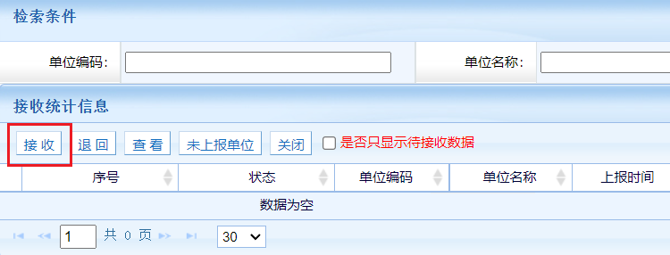 點擊接收按鈕,系統(tǒng)彈出如下接收頁面,選擇待接收數(shù)據(jù),點擊接收。